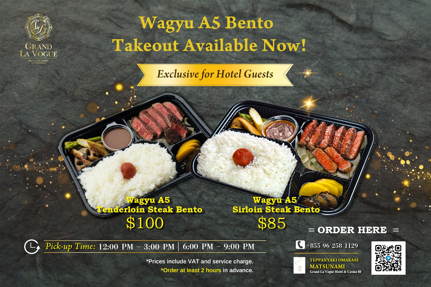 - Wagyu A5 Tenderloin Steak Bento – $100